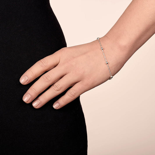 925 Sterling Silver 1.4 Singapore Chain Bracelet Size with 4 Mm Ball Beads 7" 7.5" In